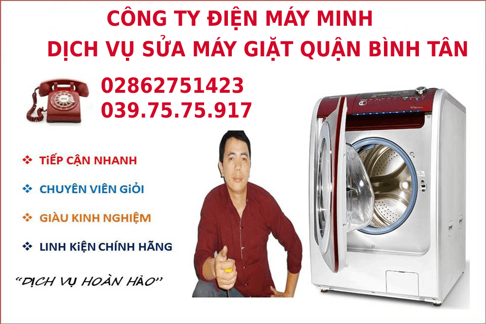 Qúy khách hàng hãy sử dụng ngay dịch vụ sửa chữa máy giặt quận Bình Tân của Điện Máy Minh để đảm bảo được chất lượng. Với hơn 10 năm kinh nghiệm chúng tôi cam kết mang đến cho quý khách hàng dịch vụ chuyên nghiệp - giá rẻ - uy tín.