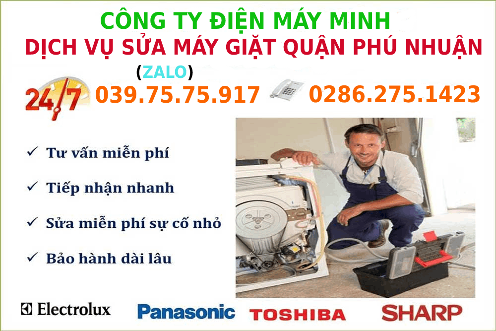 Công ty điện Máy Minh chuyên sửa máy giặt quận Phú Nhuận và trên toàn khu vực Tp.HCM. Khi máy giặt xảy ra sự cố bạn hãy tắt nguồn điện và tìm một địa chỉ tin cậy và gần bạn nhất để có thể đảm nhiệm công việc nhanh chóng và chuyên nghiệp. Đến với điện Máy Minh bạn sẽ được trải nghiệm dịch vụ chuyên nghiệp – giá rẻ - uy tín mà không đơn vị nào có thể làm tớt hơn công ty chúng tôi. Chúng tôi đang ở hữu một đội ngủ nhân viên có nhiều năm kinh nghiệm, quy trình làm việc chuyện nghiệp, nhanh chóng nhất